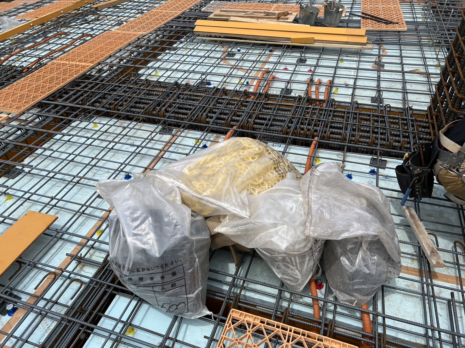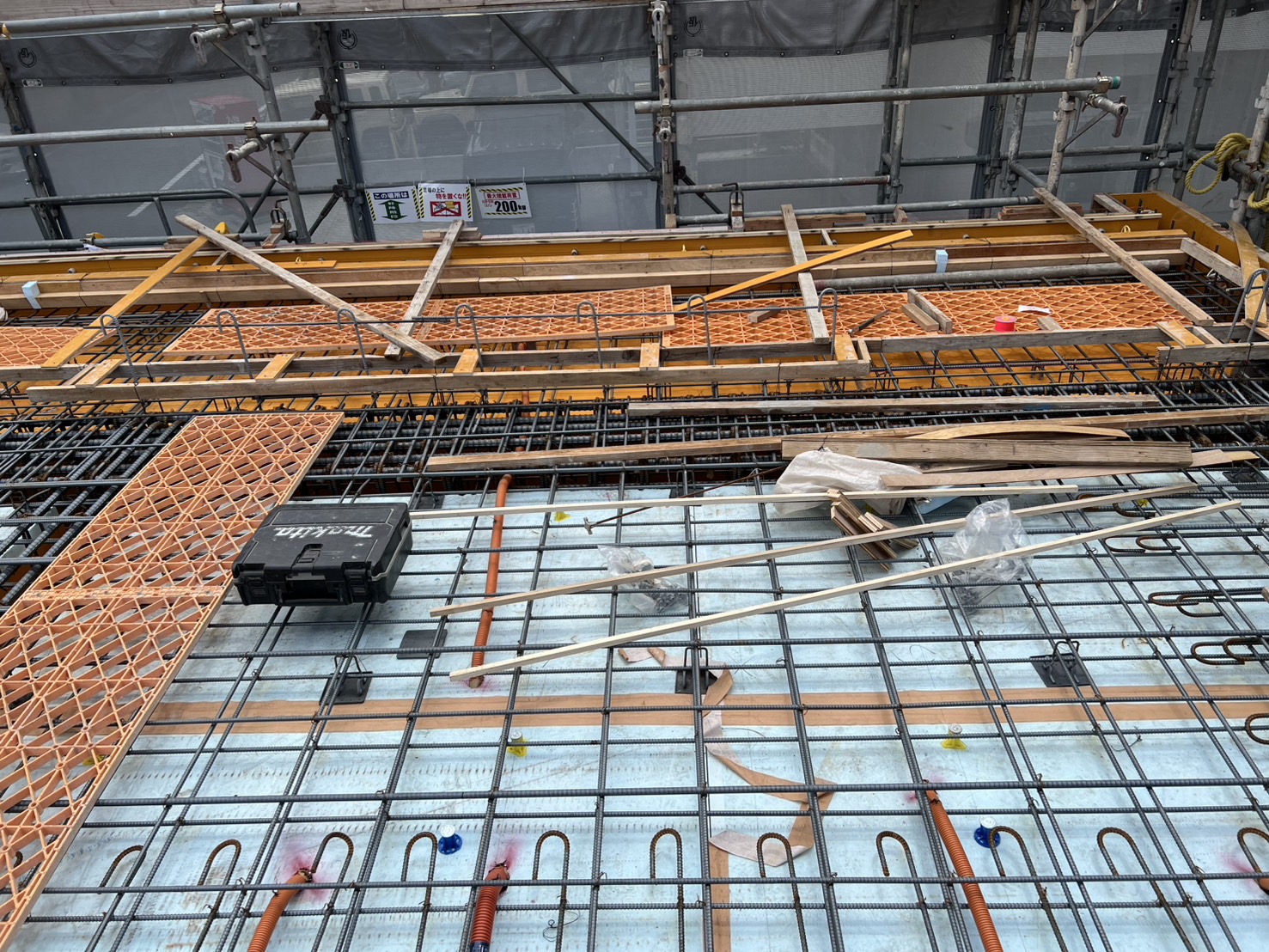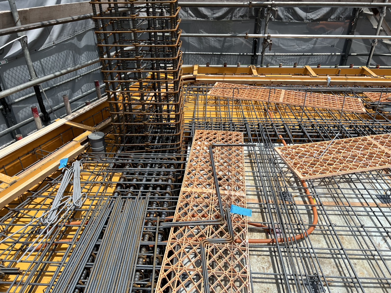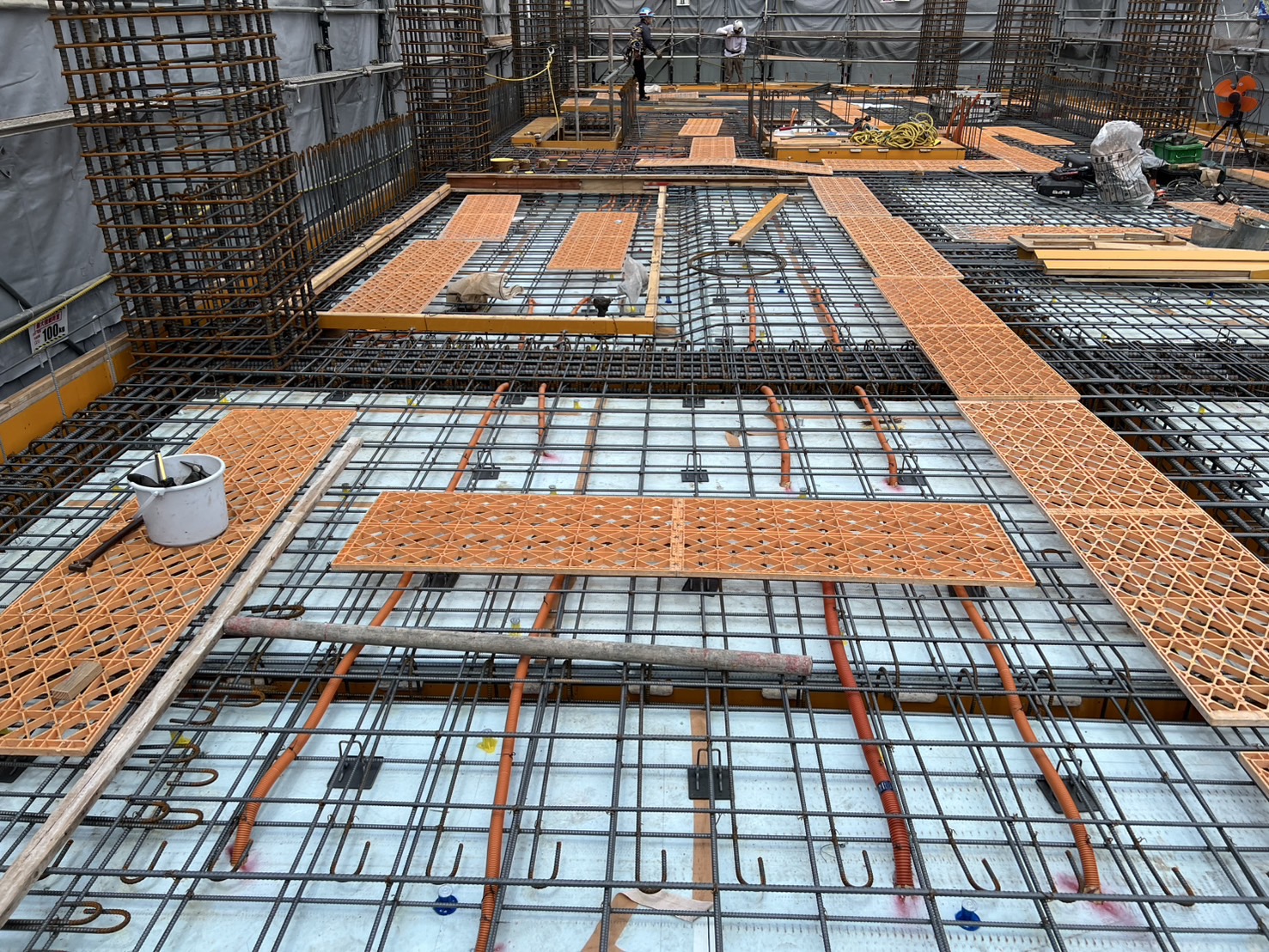 スラブ配管が完了後は、コンクリートの打設に進みます。その後、内装や設備工事へと段階を踏んで建物が完成していきます。